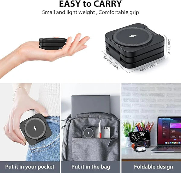 Faltbares magnetisches kabelloses 3-in-1-Ladegerät und Ständer-Set