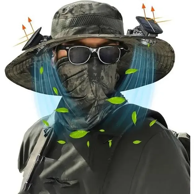 This upgraded wide-brim solar fan hat is your ultimate outdoor companion. Featuring dual high-speed motors (up to 5,000 RPM) and 7-blade turbo fans embedded in the brim, it blasts 3 adjustable wind speeds to instantly cool your face, neck, or back—no more juggling handheld fans while fishing or hiking!